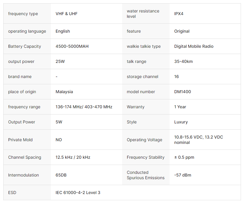 • VHF:136-174 Mhz UHF:403-527 Mhz